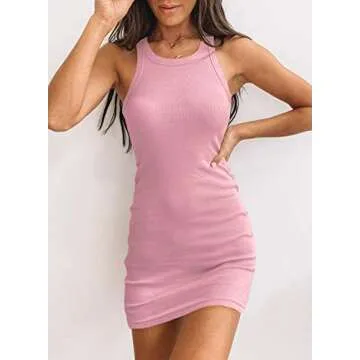 Step up your style game with the Samefar Women's Casual Scoop Neck Sleeveless Tank Dress. Crafted from a lightweight and soft rib knit fabric, this bodycon mini dress is designed to offer exceptional comfort without sacrificing flair. Its stretchy material hugs your curves, ensuring a flattering fit for every body type. The chic scoop neckline keeps the garment looking fresh and fashionable, perfect for any occasion. The solid color binding and racerback design not only enhance its elegance...