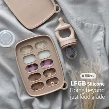 SAMiGO Baby Food Fruit Feeder and Breastmilk Popsicle Mold Set, Silicone Fruit Teether, Food Feeder Pacifier for Teething Relief, Freezer Tray, Baby Feeding Essentials, 4 Months+