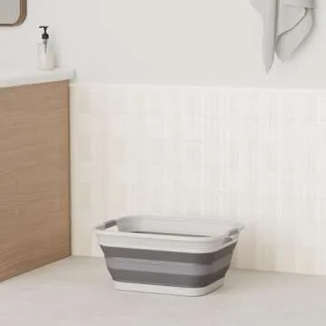 SAMMART 42L(11 gallon) Collapsible Plastic Laundry Basket-Foldable Pop Up Storage Container/Organizer-Portable Washing Tub-Space Saving,Water capacity 34L(9 gallon) (1 Rectangular - strengthen, Grey)