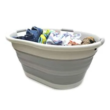 SAMMART 57L (15 Gallons) Collapsible 3-Handled Plastic Laundry Basket - Oval Tub - Portable Washing Tub-Space Saving Laundry Hamper, Water Capacity 44L / 11.6 Gallon (1, Grey)