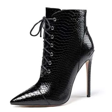 Chic Comfort: SAMMITOP Pointed Toe Lace Up High Heel Booties