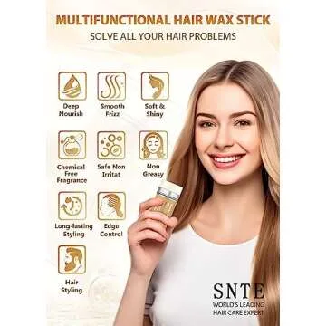 Samnyte Hair Wax Stick for Flyaways, Fly Away Hair Tamer Stick for Baby Hair, Hair Finishing Stick Works in 3 Seconds, Hair Wax Stick for Long-Lasting Fixed Hair Styling, Wax Stick for Hair