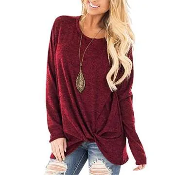 SAMPEEL Juniors Long Sleeve Loose Twist Knot Leggings T Shirts Casual Sweaters Red M