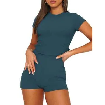 Designed with a chic crew neck baby tee and high-waisted booty shorts, this outfit combines a slim fit with a fashionable touch. The lightweight and breathable material makes it perfect for warm weather or as a cozy layer during those cooler evenings.