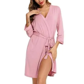 Samring Women Robe Soft Kimono Robes Bathrobe Sleepwear Loungewear Short Dusty Rose L