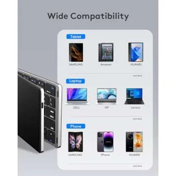 With a standard-size layout that resembles a traditional desktop keyboard, you'll enjoy a comfortable typing experience without the frustration of cramped keys. The quiet operation means you can concentrate without distraction, whether you're composing emails or working on lengthy documents. Weighing just 5.53 ounces, this keyboard's sleek design does not compromise on performance—simply fold it up when you're done and stow it away for your next adventure.