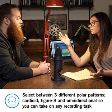 It supports cardioid, bidirectional, and omnidirectional pickup patterns, catering to various recording scenarios.