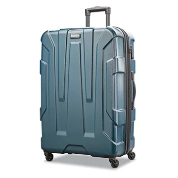 Show moreElevate your travel experience with the Samsonite Centric Hardside Expandable Luggage with Spinner Wheels in a vibrant Teal color. This 28-inch checked-large luggage is designed to maximize your packing power, making it the perfect companion for longer trips. With packing dimensions of 27.75" x 19.6" x 12.4" and overall dimensions of 30.4" x 20.9" x 12.4", it offers ample space without compromising on mobility, thanks to its lightweight design weighing only 10.8 lbs. The scratch-resistant polycarb twill texture ensures your luggage stays beautiful trip after trip, while the four multi-directional oversized spinner wheels provide effortless mobility. Inside, a full-zip interior divider and cross straps offer increased packing organization, and the side-mounted TSA locks deter theft, ensuring only you or a TSA agent can access your belongings. With a 1.5" expansion capability, you can pack more items, and the push-button locking handles ensure easy maneuverability.