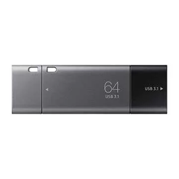 Show moreThe Samsung DUO Plus 64GB - 300MB/s USB 3.1 Flash Drive revolutionizes your file transfer experience with an innovative and practical design. This sleek black and silver flash drive offers an incredible speed capacity of up to 300 MB/s, ensuring that your data moves effortlessly between devices. Designed to keep up with your on-the-go lifestyle, this cable-free, 2-in-1 Type-C USB flash drive fits conveniently into the palm of your hand and features a practical key ring to minimize the risk of loss. Whether you're transferring large files, sharing precious memories through photos and videos, or storing essential work documents, the DUO Plus serves as a reliable and secure storage solution for all your needs.