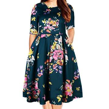 Samtree Women's Plus Size Floral 3/4 Sleeve Backless Cocktail Party Swing Dress(Tag Size 3XL(US 14 W),Green)