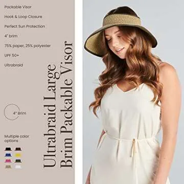 When compared to other sun hats on the market, the Ultrabraid Large Brim Visor stands out due to its combination of performance and aesthetic appeal. Many visors lack adequate sun protection or come without adjustable features. This product exceeds expectations with UPF 50+ shielding, its ability to fold without damage, and a chic look that competing brands often overlook. Additionally, customer feedback highlights its comfort and versatility, making it a much-preferred option.