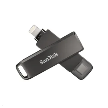 Show more Introducing the SanDisk 128GB iXpand Flash Drive Luxe, your ultimate companion for hassle-free data transfer and backup from your iPhone and iPad Pro. Whether you're using it with your trusty Apple devices or a USB-C supported Android phone, this versatile 2-in-1 flash drive, featuring both Lightning and USB Type-C connectors, ensures you stay connected and streamlined. No more fussing with multiple devices or worrying about compatibility – simply plug it in and enjoy hassle-free file management.