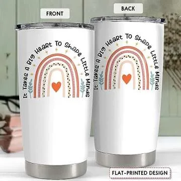 SANDJEST Teacher Tumbler - It Takes Big Heart to Shape Little Minds Travel Coffee Mug Appreciation Gift for Teachers - 20oz Insulated Stainless Steel Tumblers Birthday, Christmas, Back To School Gifts