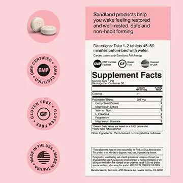 Sandland Stay Asleep, Natural Daily Sleep Supplement, 30 Pills, Magnesium, Valerian Root, L-Theanine, Peppermint Leaf, Made in The USA