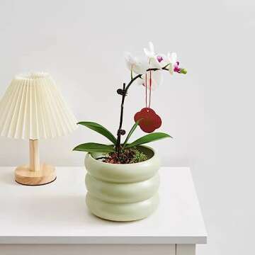 Show moreIf you're looking to add a touch of elegance and artistry to your home or office, look no further than the SANDYBAYTAS Ceramic Plant Pot. This 4.5-inch planter boasts a stunning bubble design that not only sets it apart visually but also enhances the aesthetic of any interior space. Crafted from high-quality refractory ceramic, this pot is both durable and fashionable, seamlessly blending with a variety of decor styles. Its chic green color offers a refreshing look that perfectly complements small plants such as succulents, cacti, and herbs.