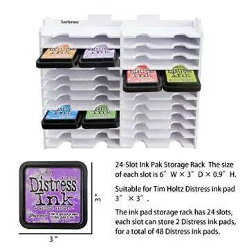 Sanfurney 24 Slots Ink Pad Holder and Stamp Pad Storage Organizer for Distress Ink Pads Diamond Painting Tray Rack for Crafts Supply, Stackable Wall Mount
