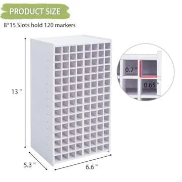 Show moreIntroducing the SANFURNEY Art Marker Storage Rack, your ultimate solution for a clutter-free creative space! This thoughtfully designed marker organizer can seamlessly accommodate up to 120 markers, making it perfect for artists, crafters, and hobbyists alike. Constructed from durable PVC foam boards, it offers exceptional strength while maintaining a lightweight structure that’s easy to assemble. With its compact dimensions of 6.6"W x 5.3"D x 13"H, this rack can fit beautifully on your desk or into a 13" x 13" cabinet, providing versatility in placement.