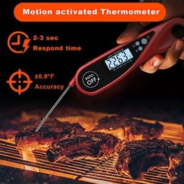 Sangaotian Digital Meat Thermometer, Instant Read Cooking Thermometer with Backlight, Magnet, Waterproof & Foldable, Fast & Precise, Ideal for Deep Fry, BBQ & Roast Turkey,Red