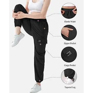 SANGTREE Girl's Cargo Jogger Pants,Lightweight Quick Dry Water Resistant Outdoor Lounge Hiking Joggers with Pockets,Quick Dry-Black,6-7 Years Toddler=Tag 130