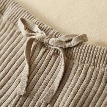 Show moreIntroducing the SANGTREE Women's Drawstring Solid Plain Knitted Wide Leg Cashmere Lounge Pants in a rich camel color, crafted from a luxurious blend of cashmere and Tencel. These lounge pants offer an unparalleled combination of softness, warmth, and breathability, making them the perfect addition to your loungewear wardrobe. The high-waisted design and straight-leg silhouette with stylish side splits offer a flattering fit while ensuring maximum comfort. With a convenient drawstring closure, these pants are easy to pull on and off - whether you're enjoying a cozy day at home or running errands around town.