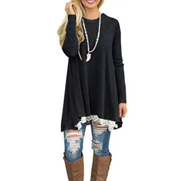 Sanifer Womens Tops Long Sleeve Tunics Round Neck Blouses Shirts for Leggings