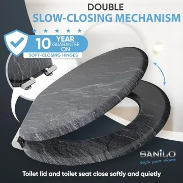 Introducing the SANILO Wooden Toilet Seat with Soft Close – a stunning blend of functionality and design that transforms your bathroom experience. Crafted with care, this round toilet seat features a high-resolution granite motif that adds a touch of elegance to any bathroom decor. The vibrant colors and photo-realistic design ensure that your toilet becomes not just a utility, but a statement piece in your home. Made from durable molded wood, this decorative toilet seat is built to last,...