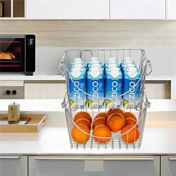 SANNO Stackable Baskets Organizer Bin Stacking Wire Baskets for Home Kitchen Storage, Hanging Garage Tool Organizer, Office and Bathroom Shelves, Large Fruit Basket,set of 2