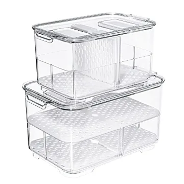 SANNO Vegetable Fruit Containers Fridge Food Storage Produce Saver Container Set of 2