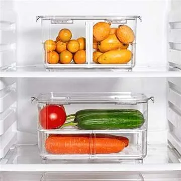 SANNO Vegetable Fruit Storage Containers, Food Storage Containers Fridge Produce Save, Stackable Refrigerator Organizer Keeper Drawers Bins Baskets with Lids and Removable Drain Tray