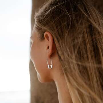 SANNYRA Safety Pin Earrings - Trendy Silver Minimalist Hoop Jewelry for Women