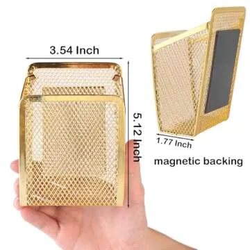 Sanpaint Magnetic Pen Holder - Gold Mesh Cups for Lockers, 2-Pack
