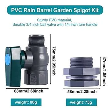 Sanpaint PVC Rain Barrel Diverter Kit: 3/4 Inch Valve & Bulkhead Fitting