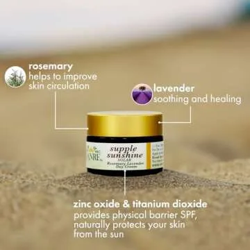Show moreIntroducing the SanRe Organic Skinfood Supple Sunshine Day Cream, your perfect ally for radiant skin! Crafted with a unique blend of organic rosemary and lavender, this cream not only hydrates but also offers SPF 30 sun protection, making it an essential addition to your daily skincare routine. Specifically designed for dry to normal skin, it provides deep moisture crucial for maintaining your skin's suppleness and elasticity. The anti-aging properties help reduce the appearance of fine lines and wrinkles, giving your skin a youthful glow while you enjoy the warmth of the day.
