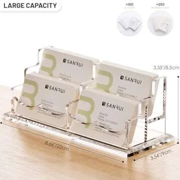 SANRUI Acrylic Business Card Holder for Desk, Horizontal Clear Name Card Display Stand Desktop Display Stand for Business Cards, Business Card Organizer, Perfect for Offices & Professionals 4 Slots