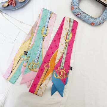 What makes these scarves truly special is their multifunctionality. Whether you're accessorizing your handbag, creating a fashionable hair look, or even as decorative elements for your hats, these scarves can do it all. They can serve as elegant ribbon scarves, stylish belt embellishments, or simply a pop of color and pattern to your outfit. Designed for every occasion, they serve as charming purse charms and can be adapted to any personal style.