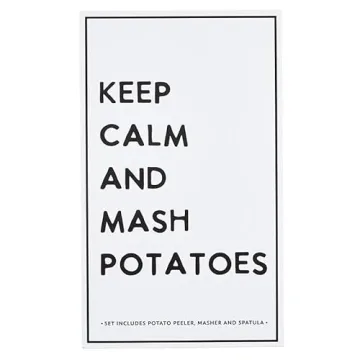 Show moreKEEP CALM AND MASH POTATOES GIFT SET Includes a potato peeler, masher, and spatula; a great gift for any foodie or home cook 2024 OPRAH'S FAVORITE THINGS and gift boxed to make giving made easy - great for a hostess or housewarming gift or a last minute Christmas gift PREMIUM QUALITY Masher and peeler are made from high quality food grade stainless steel - no warping, bending, or rust; durable silicone and beech wood spatula RECIPE INCLUDED The inside flap features a delicious recipe for roasted garlic mashed potatoes, the ultimate comfort food EASY TO GIVE, EASY TO LOVE Santa Barbara Design Studio's book-style boxed sets make gift-giving easy; there is something for everyone on your list - bakers, cooks, baristas, cheese lovers, cocktail mixologists, and so much more Less