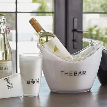 Santa Barbara Design Studio SIPS Ice Bucket Acrylic Double-Handle Black and White Champagne Bucket, 10.8" Wide, The Bar