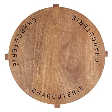 When compared with other cheese boards on the market, the Santa Barbara mango wood board stands out with its striking design and the eco-friendly attributes of mango wood. Many alternatives may be made from synthetic materials or less sustainable woods. Moreover, this board's unique pedestal base offers height and elegance that isn’t commonly found in standard cheese boards, enhancing your table's aesthetic. The engraved "Charcuterie" also adds a personal touch that makes it a standout, thoughtful piece.