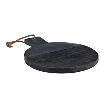 Santa Barbara Design Studio Table Sugar Round Marble and Mango Wood Serving Board, Medium, Black