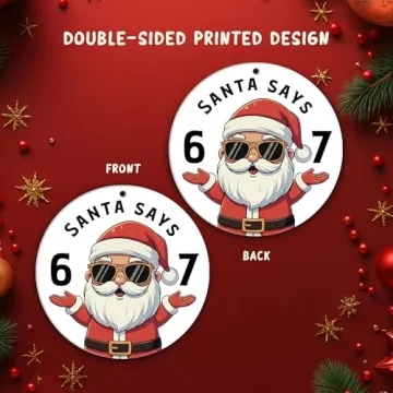 Show moreDiscover the perfect combination of humor and holiday cheer with our **Santa Says 67 Ornament**. This 3.54-inch ornament features the hilariously viral "Santa Says 67" meme, showcasing a cool Santa sporting shades that perfectly captures Gen Z humor. Crafted from premium acrylic, this ornament delivers a glossy, durable finish, making it not just a seasonal decoration but a memorable keepsake that radiates laughter. The vibrant UV printing technique ensures that the colors pop and the artwork remains stunning from every angle, making it a standout addition to your Christmas tree, car, or even your office desk.
