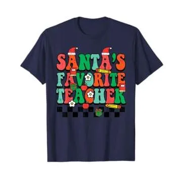 Santas Favorite Teacher Retro Groovy Christmas Xmas Women T-Shirt