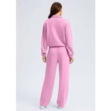 SANTINY Women’s Oversized Sweatsuits 2 Piece Lounge Set, Pink M