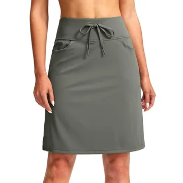 Show more SANTINY Women's 20'' Knee Length Skorts Skirts are the perfect blend of style, comfort, and functionality. Designed for active women who appreciate both elegance and performance, these skorts seamlessly transition from the golf course to casual outings. Crafted from an ultra-soft, quick-drying, and 4-way stretchy nylon fabric, they provide optimum comfort and flexibility during your most active days. With a modest length of 20 inches, these skorts offer great coverage without compromising on flair.
