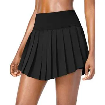 Show more The SANTINY Women's Pleated Tennis Skirt is your new go-to athletic piece designed for both performance and style. Featuring a charming pleated design with a curved hem, this skirt enhances your silhouette while providing the freedom of movement you crave. Crafted from lightweight, quick-dry fabric, it not only looks flattering but also feels great, ensuring you remain comfortable throughout your games and daily activities.
