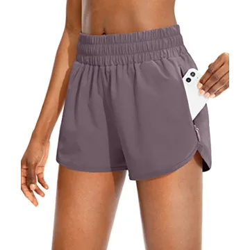 SANTINY Women's Running Shorts with Zip Pockets - High Waisted Athletic Gym Shorts in Dusty Purple