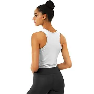 Sanutch Womens Athletic Crop Top Workout Shirts Athleisure Exercise Tops Cropped Workout Tank White M