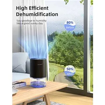 Show more Introducing the SANVINDER Dehumidifier for Home, a remarkable solution designed to create a comfortable and relaxing environment in your space. With its advanced Thermo-Electric Peltier semiconductor technology, this compact dehumidifier efficiently absorbs up to 16 oz (450 ml) of moisture daily, making it exceptionally effective for areas up to 285 square feet. Its generous 25 oz (750 ml) water tank ensures you won't frequently need to empty it, allowing you to enjoy the benefits of a drier atmosphere with minimal interruption. Whether it’s in your bedroom, bathroom, or RV, you can now say goodbye to unpleasant humidity!