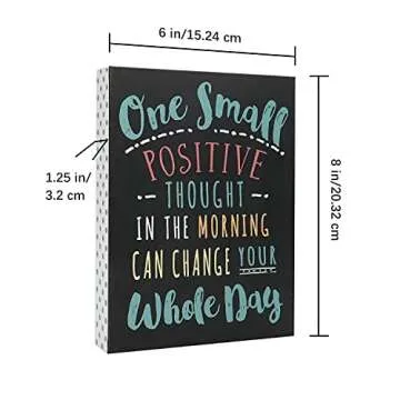 Show more Introducing the **SANY DAYO HOME Inspirational Wood Box Sign**—a delightful reminder to uplift your spirit and inspire those around you. Measuring at a generous **6" x 8"**, this elegant piece serves not only as decor but as a daily motivation. Crafted from high-quality wood, it features the uplifting message: "One small positive thought in the morning can change your whole day"—a mantra that resonates with anyone seeking a brighter outlook on life. Whether it's resting on your desk or hanging on the wall, this sign is meant to be seen daily, ensuring its powerful message is always within reach.