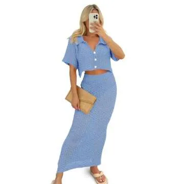 Elevate your summer wardrobe with the Saodimallsu Women Crochet Beach Cover Up Set, a stunning 2-piece outfit designed to embody elegance and charm. Crafted from high-quality acrylic, this set features a soft and breathable fabric that keeps you comfortable in spring, summer, and autumn. The set includes a chic crop top with a button-up design, adorned with unique crochet knit detailing and a stylish hollow-out...