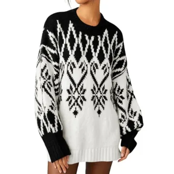 Show moreEmbrace the cozy vibes of the festive season with the Saodimallsu Women's 2024 Fall Christmas Sweater. This trendy chunky knit crew neck sweater is crafted from a high-quality blend of materials, including 30% Polyester, 26% Viscose, 24% Acrylic, and 20% Polyamide, ensuring a soft, comfortable, and warm feel that is perfect for chilly autumn and winter days. The oversized design features long puff sleeves and a chic crew neck, paired with stylish patterns of snowflakes, hearts, and argyle that add a touch of modern flair to your holiday wardrobe. Whether you’re heading to a holiday party or enjoying a casual day out, this sweater effortlessly blends comfort with style, making you look charming and sophisticated.